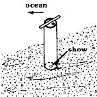 1. Place the tube over the "show." Check the impression of tube in the sand to center the clam.